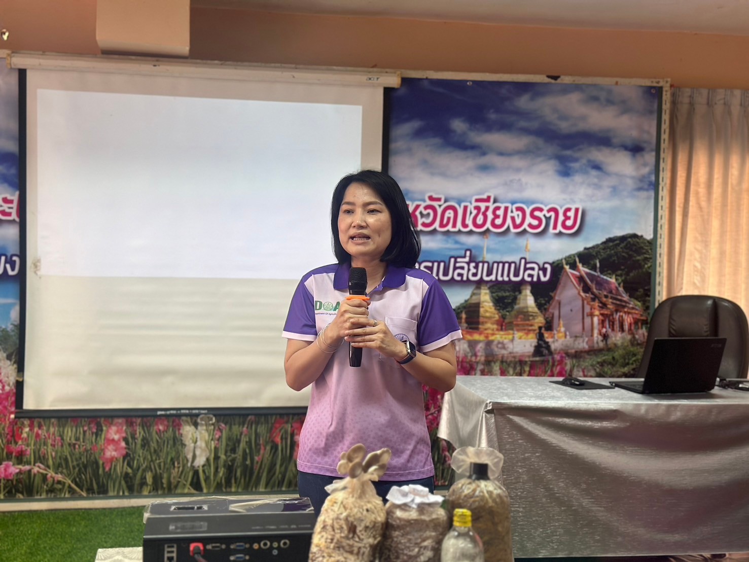 ศสพ.ชร. ร่วมเป็นวิทยากรบรรยาย / สาธิต หัวข้อ การใช้ฟางข้าวทำวัสดุเพาะเห็ด (เห็ดนางฟ้า เห็ดนางรม เห็ดฟาง เห็ดโคนน้อย)