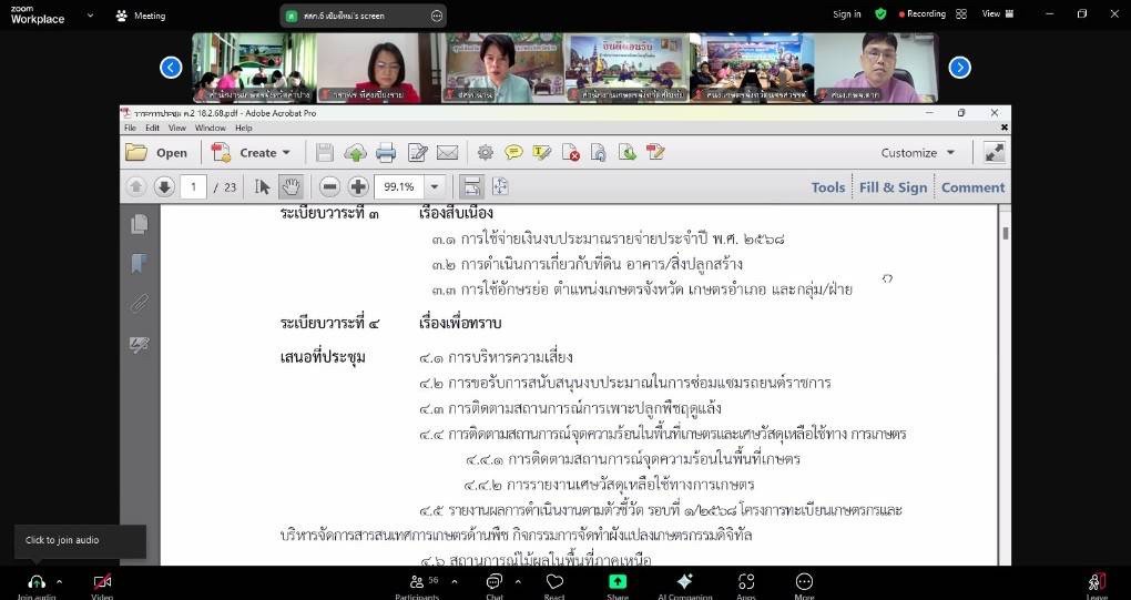 ศสพ.ชร. เข้าร่วมประชุมเกษตรจังหวัดและหัวหน้าส่วนราชการระดับเขต ครั้งที่ 2 ปีงบประมาณ 2568 ผ่านระบบออนไลน์ Zoom Meeting.