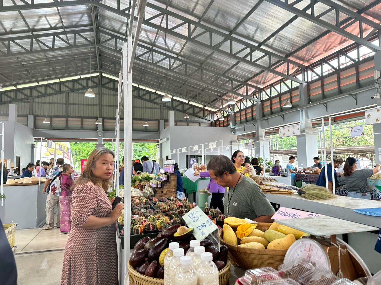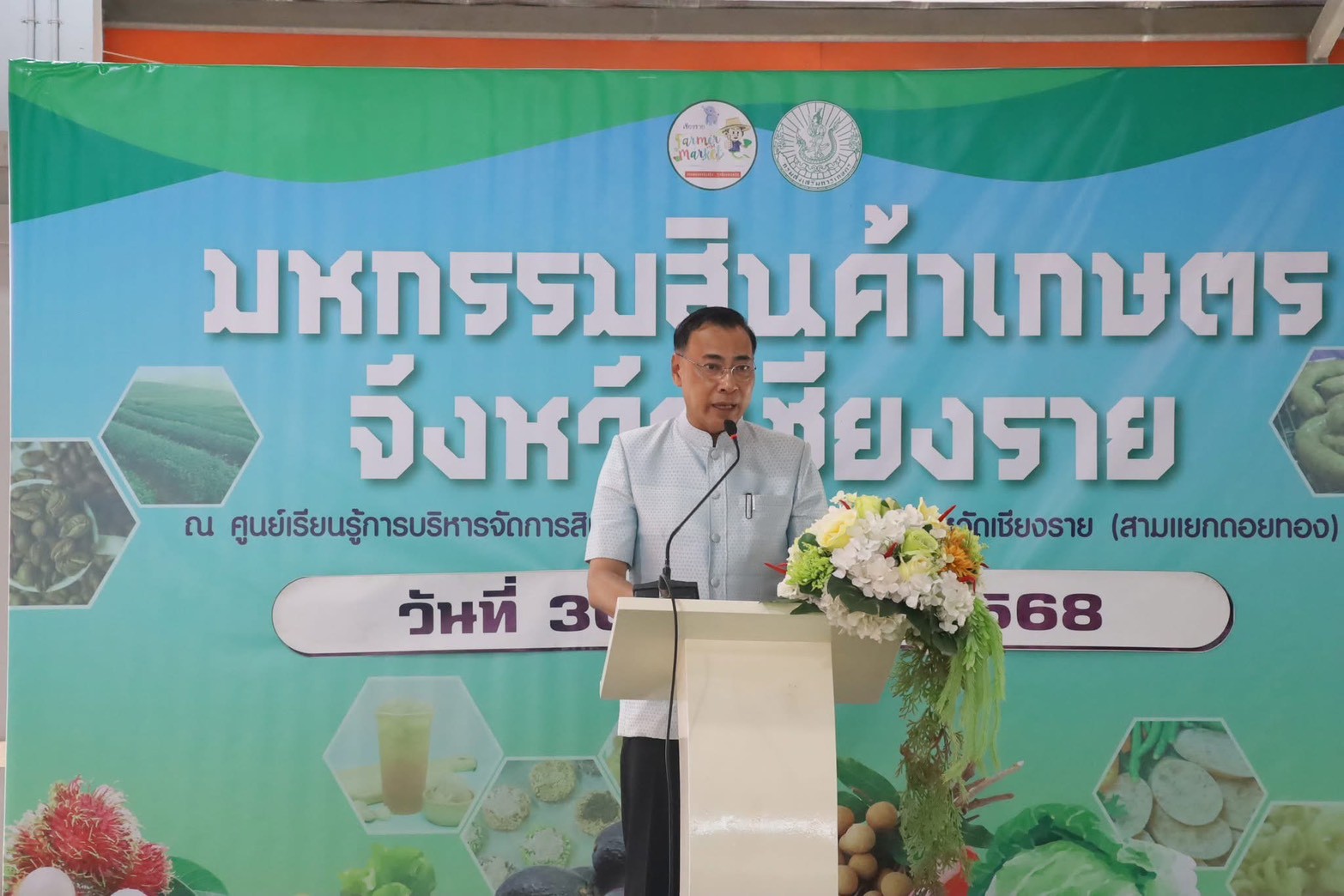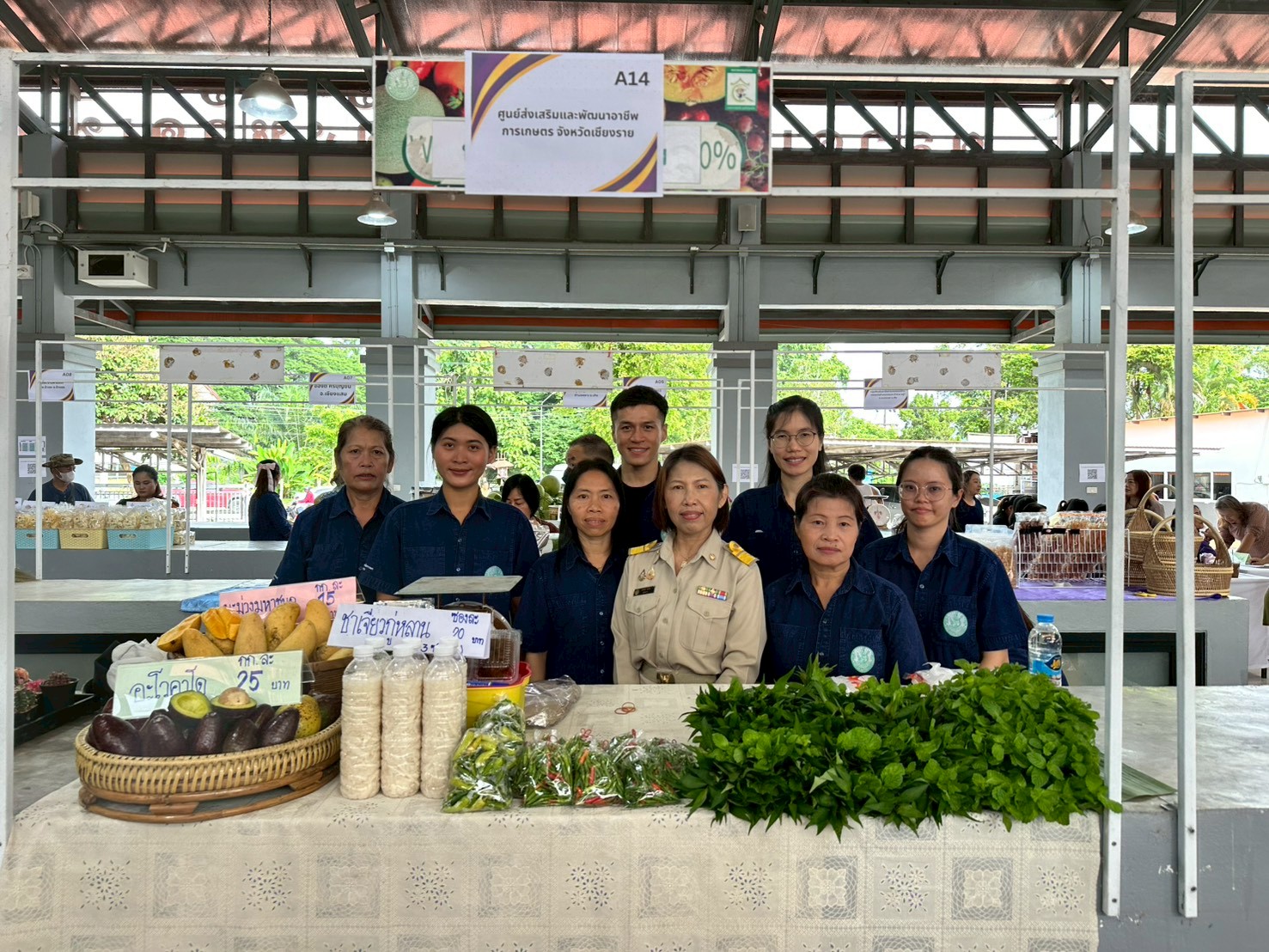 วันที่ 30 มิถุนายน 2568 เวลา 08.30 น. นางพรรณี สุขใส ผู้อำนวยการศูนย์ส่งเสริมและพัฒนาอาชีพการเกษตรจังหวัดเชียงราย พร้อมด้วยเจ้าหน้าที่ศูนย์ฯ เข้าร่วมจัดนิทรรศการ งานมหกรรมสินค้าเกษตรจังหวัดเชียงราย เพื่อร่วมประชาสัมพันธ์และส่งเสริมการตลาดของสูนย์เรียนรู้การบริหารจัดการสินค้าเกษตร ตลาดเกษตรกรจังหวัดเชียงราย ให้เป็นที่รู้จักในวงกว้างมากขึ้น และเพื่อเพิ่มช่องทางการจำหน่ายผลผลิตทางการเกษตร ผลิตภัณฑ์ สินค้าแปรรูป สินค้าหัตถกรรม ที่มีคุณภาพของเกษตรกรและพัฒนาทักษะด้านการตลาด พัฒนาตลาดสินค้าเกษตรไปสู่ความเข้มแข็ง มั่นคง และยั่งยืน โดยมีนายชรินทร์ ทองสุข ผู้ว่าราชการจังหวัดเชียงราย เป็นประธานเปิดงานฯ ณ ศูนย์เรียนรู้การบริหารจัดการสินค้าเกษตร ตลาดเกษตรกรจังหวัดเชียงราย