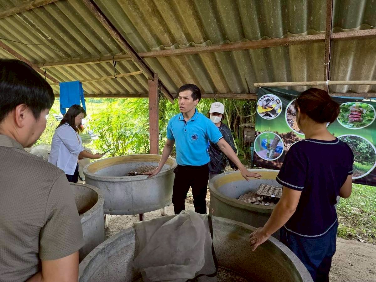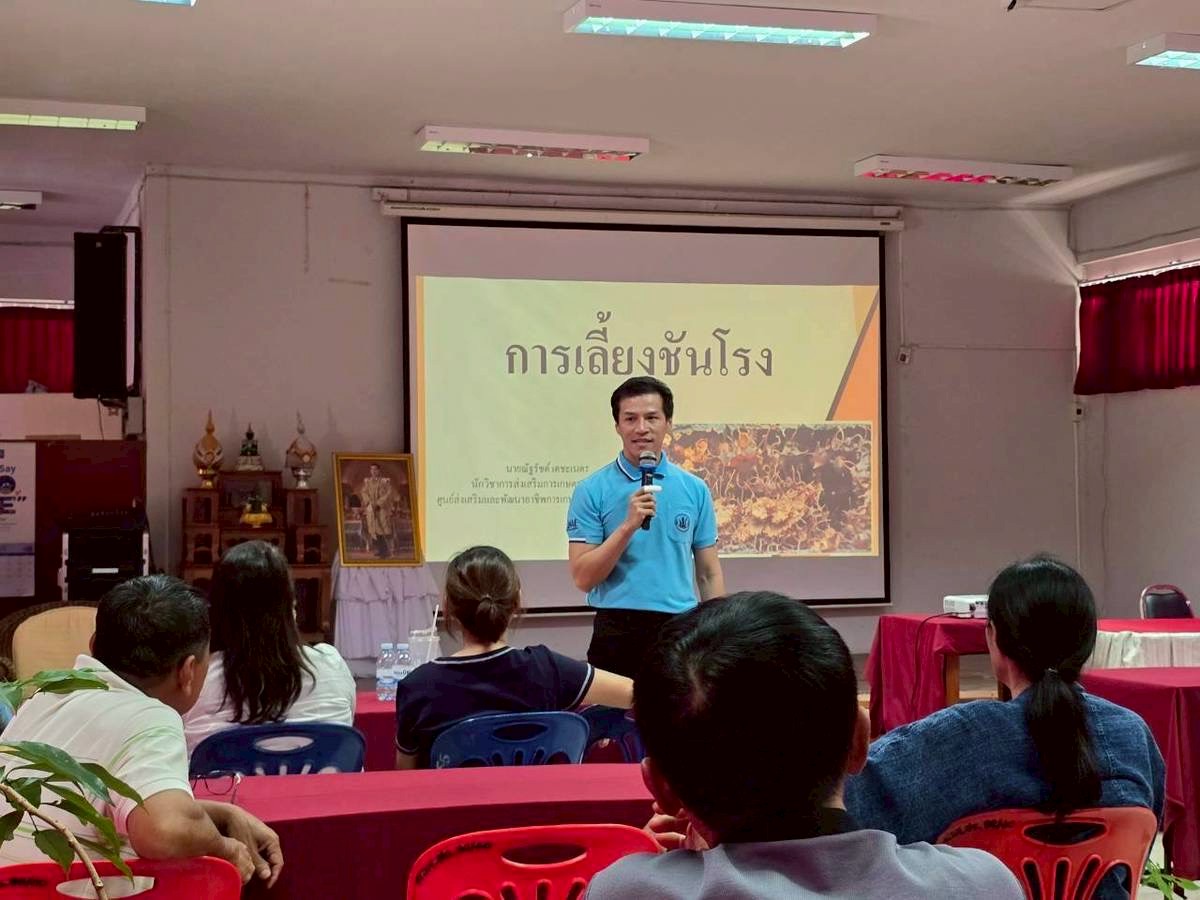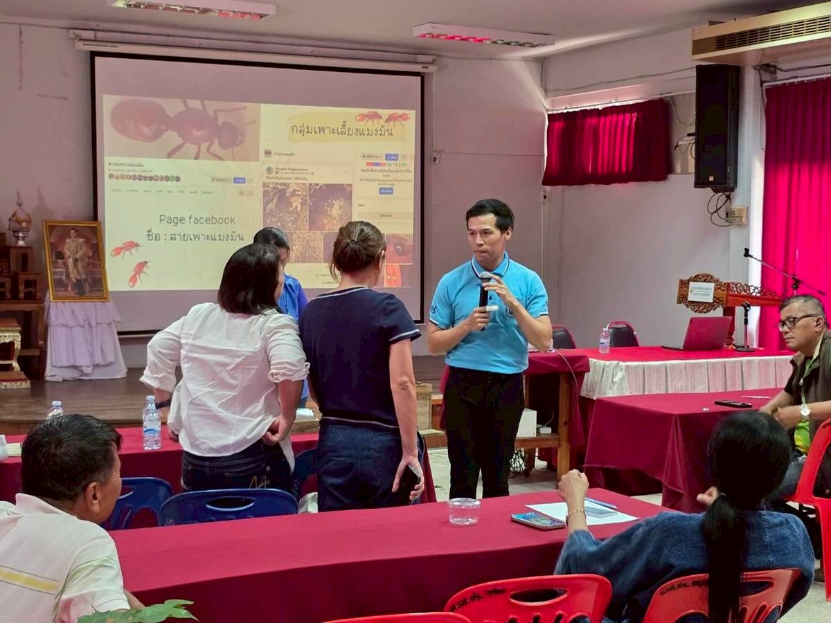 วันที่ 22 สิงหาคม 2568 เวลา 13.00 น. นางพรรณี สุขใส ผู้อำนวยการศูนย์ส่งเสริมและพัฒนาอาชีพการเกษตรจังหวัดเชียงราย มอบหมายให้นายณัฐรัชต์ เตชะเนตร นักวิชาการส่งเสริมการเกษตรชำนาญการ ร่วมต้อนรับและเป็นวิทยากรบรรยายให้ความรู้ ในหัวข้อ การเลี้ยงผึ้งชันโรงและผึ้งโพรง และการเลี้ยงจี้งหรีด แก่คณะศึกษาดูงานจากสำนักงานเทศบาลตำบลป่าอ้อดอนชัย ภายใต้โครงการอบรมให้ความรู้ด้านการเกษตร หัวข้อ “กายขยายพันธุ์ไม้ผลพันธุ์ดีและการเลี้ยงแมลงเศรษฐกิจ” ของสำนักปลัด เทศบาลตำบลป่าอ้อดอนชัย เพื่อส่งเสริมอาชีพด้านการเกษตรให้แก่เกษตรกรและผู้สนใจในตำบลป่าอ้อดอนชัย ณ ศูนย์ส่งเสริมและพัฒนาอาชีพการเกษตรจังหวัดเชียงราย ตำบลป่าอ้อดอนชัย อำเภเมืองเชียงราย จังหวัดเชียงราย