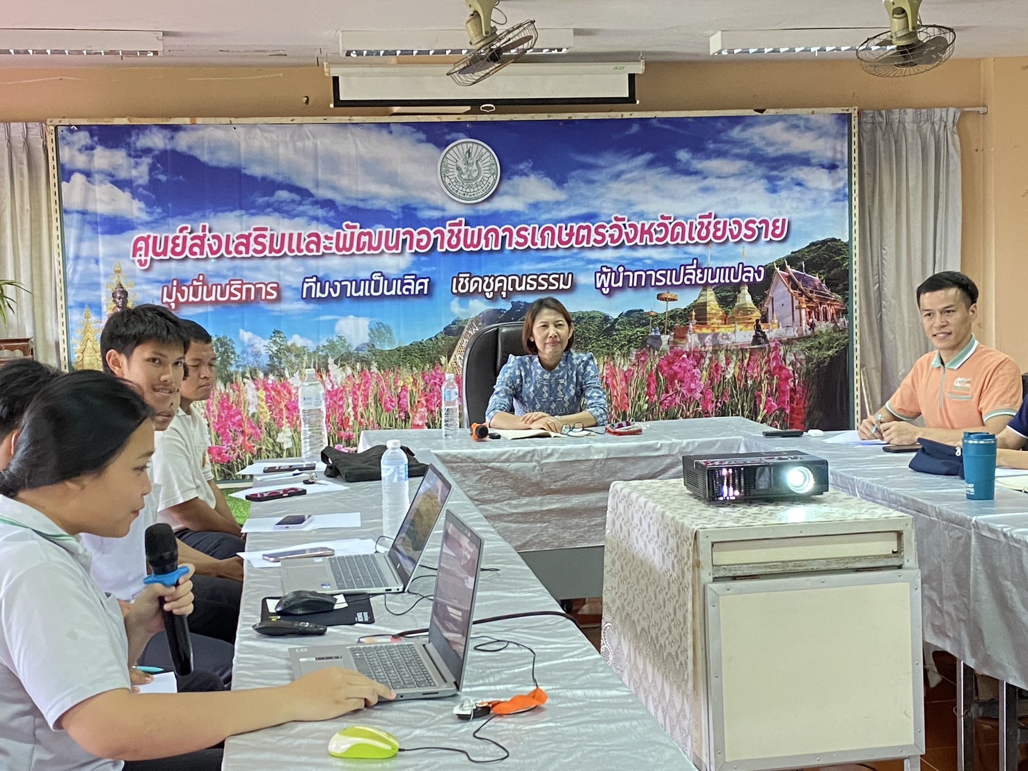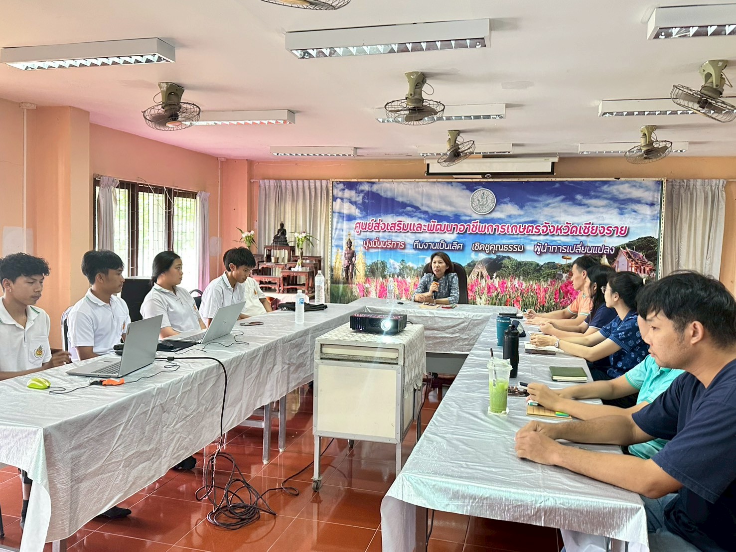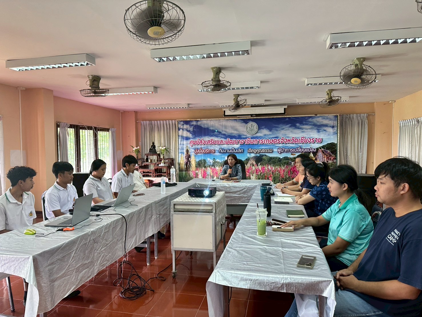 วันที่ 28 สิงหาคม 2568 เวลา 13.30 น. นางพรรณี สุขใส ผู้อำนวยการศูนย์ส่งเสริมและพัฒนาอาชีพการเกษตรจังหวัดเชียงราย พร้อมด้วยเจ้าหน้าที่ศูนย์ฯ จัดกิจกรรมให้นักศึกษาฝึกงานจากวิทยาลัยเกษตรและเทคโนโลยีเชียงราย นำเสนอผลการปฏิบัติงานที่ผ่านมา โดยนักศึกษาได้ถ่ายทอดประสบการณ์ ความรู้ และทักษะที่ได้รับตลอดช่วงการฝึกงาน ทั้งด้านการปฏิบัติงานจริงในพื้นที่ การเรียนรู้ด้านวิชาการ และการทำงานร่วมกับเจ้าหน้าที่ศูนย์ฯ กิจกรรมดังกล่าวนับเป็นโอกาสอันดีในการแลกเปลี่ยนเรียนรู้ร่วมกัน และเสริมสร้างประสบการณ์ตรงให้แก่นักศึกษา เพื่อเตรียมความพร้อมในการก้าวสู่การทำงานในอนาคต ณ ห้องประชุมศูนย์ส่งเสริมและพัฒนาอาชีพการเกษตรจังหวัดเชียงราย
