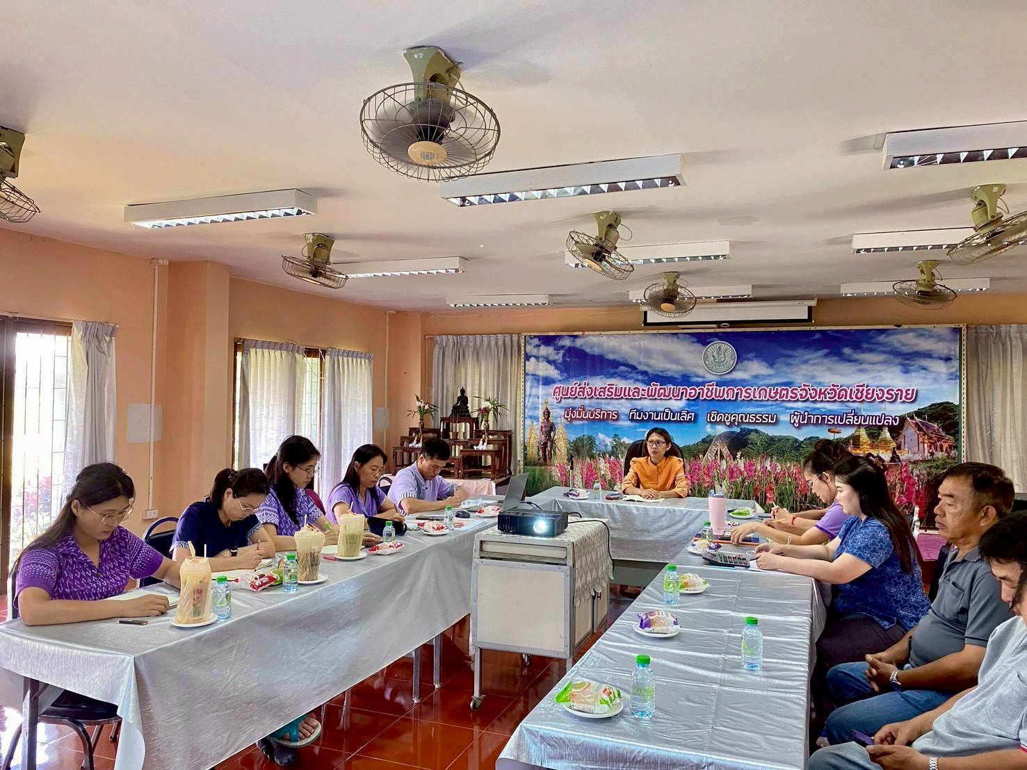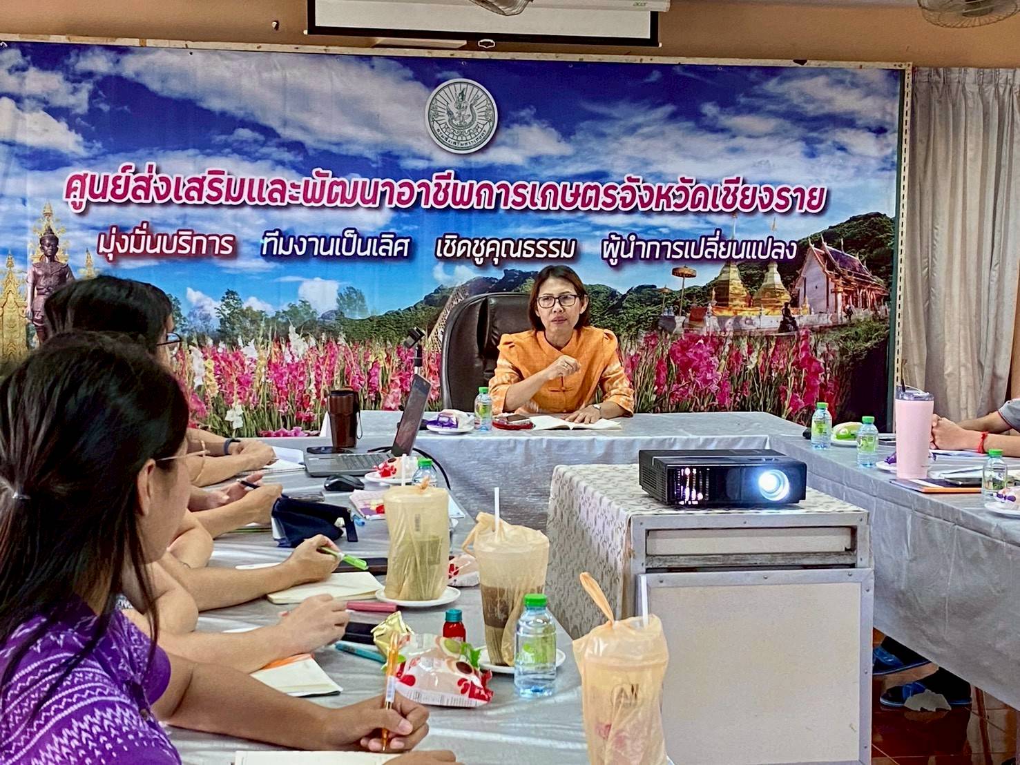 วันที่ 4 กันยายน 2568 เวลา 13.00 น. นางพรรณี สุขใส ผู้อำนวยการศูนย์ส่งเสริมและพัฒนาอาชีพการเกษตรจังหวัดเชียงราย เป็นประธานในการประชุมประจำเดือน กันยายน 2568 โดยมีข้าราชการ พนักงานราชการ ลูกจ้างประจำเข้าร่วมประชุมฯ เพื่อรับฟังข้อราชการ และติดตามความก้าวหน้าของการดำเนินงานตามแผนงาน รับทราบปัญหาและอุปสรรคต่างๆ ของเจ้าหน้าที่ผู้ปฏิบัติงาน พร้อมทั้งร่วมกันแก้ไขปัญหาและวางแนวทางการขับเคลื่อนงานต่อไป โดยสาระสำคัญในการประชุมมุ่งเน้นการดำเนินงานของศูนย์ฯ ในบทบาทการเผยแพร่ข้อมูลข่าวสาร ความรู้ แก่เกษตรกรในพื้นที่จังหวัดเชียงราย จังหวัดพะเยา และแจ้งผลการเบิกจ่ายงบประมาณของศูนย์ฯ ตลอดเดือน สิงหาคม 2568 ณ ห้องประชุมศูนย์ส่งเสริมและพัฒนาอาชีพการเกษตรจังหวัดเชียงราย ตำบลป่าอ้อดอนชัย อำเภอเมืองเชียงราย จังหวัดเชียงราย