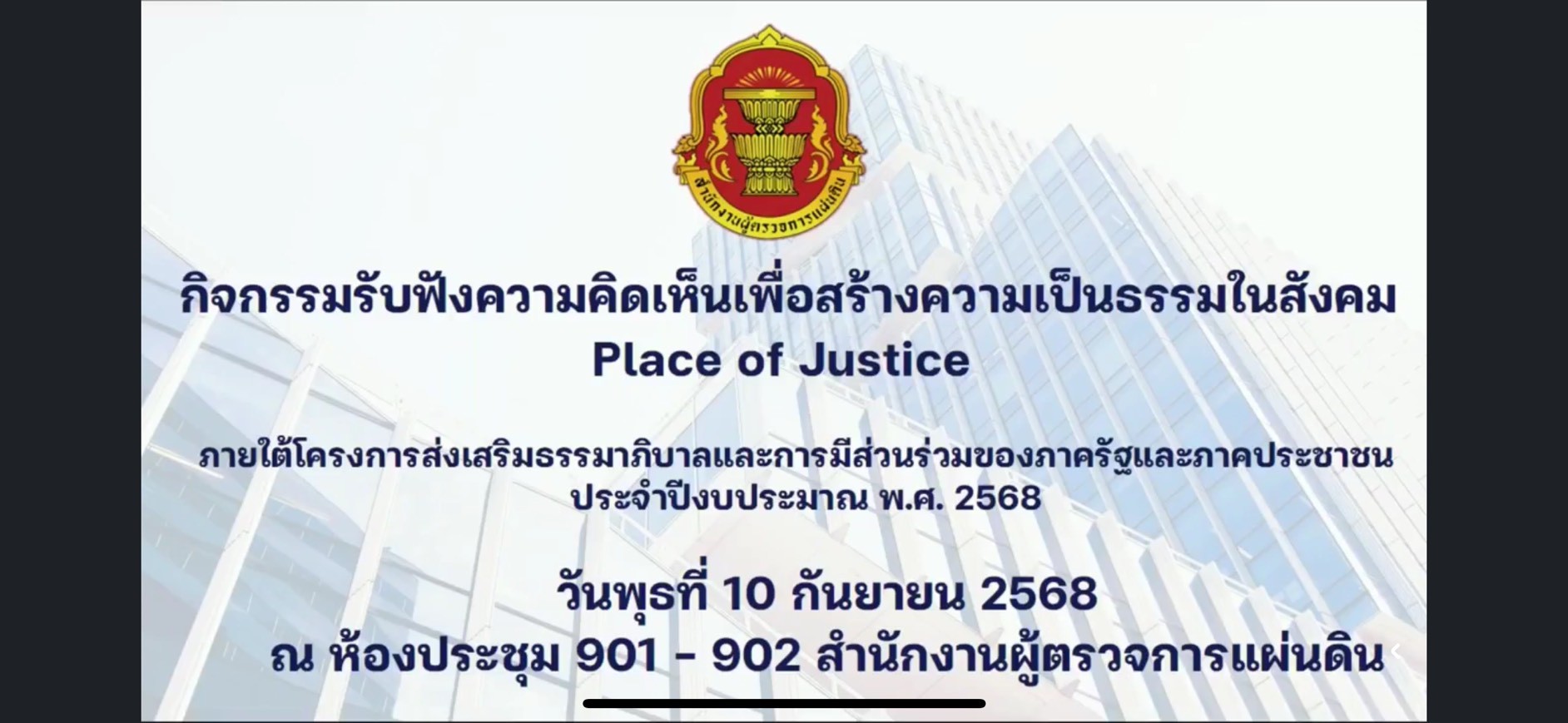 ศสพ.ชร. ร่วมกิจกรรมรับฟังความคิดเห็นเพื่อสร้างความเป็นธรรมในสังคม (Place of Justice)