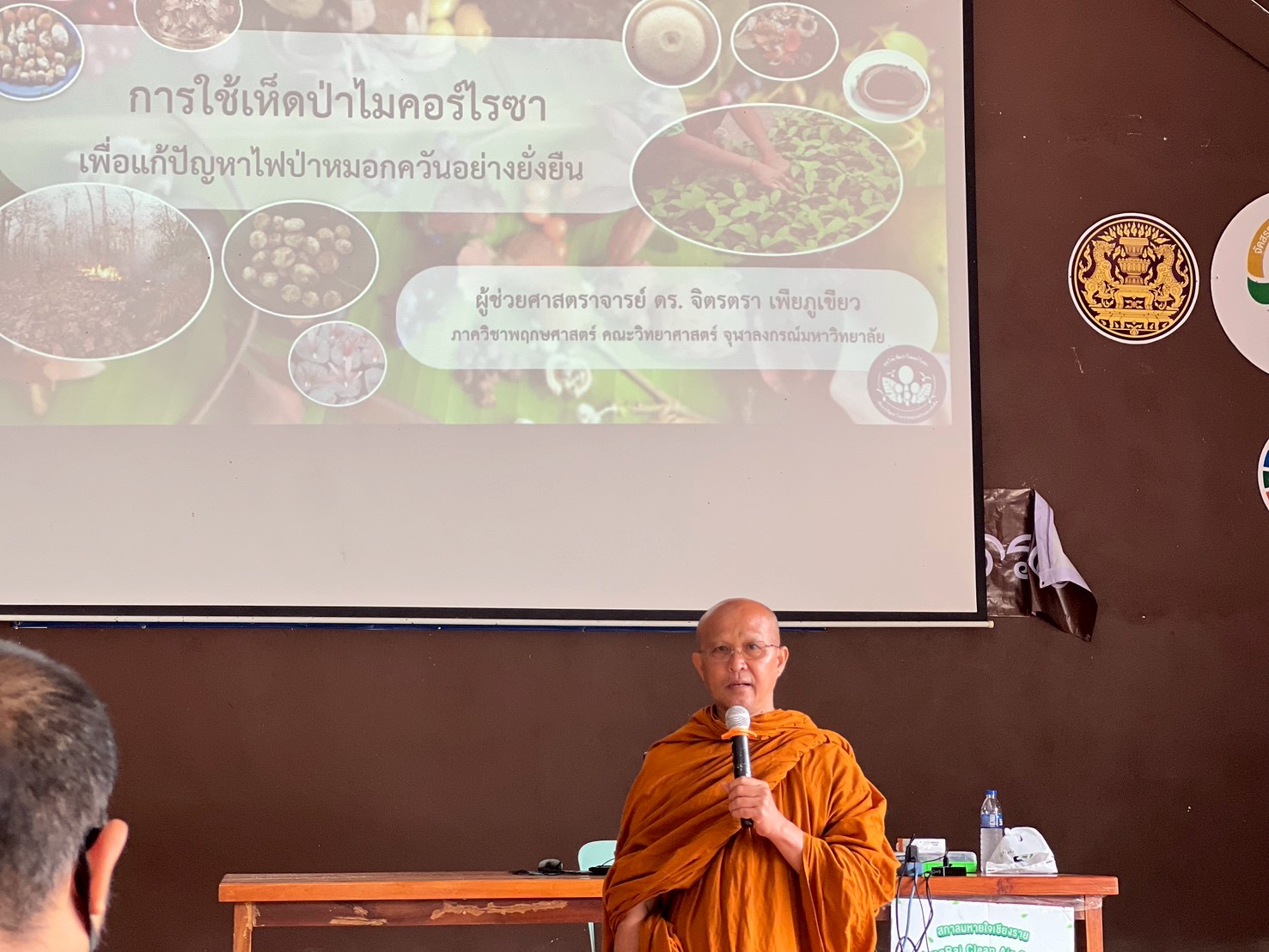 วันที่ 24 กันยายน 2568 เวลา 08.30 น. นางพรรณี สุขใส ผู้อำนวยการศูนย์ส่งเสริมและพัฒนาอาชีพการเกษตรจังหวัดเชียงราย มอบหมายให้เจ้าหน้าที่ศูนย์ฯ เข้าร่วมอบรมเชิงบรรยายและปฏิบัติการโครงการวิจัย ” การใช้เห็ดป่าไมคอร์ไรซาเพื่อแก้ปัญหาไฟป่าหมอกควันอย่างยั่งยืน ” ภายใต้แผนงาน “ประเทศไทยปลอดภัยจาก PM 2.5 เพื่อสร้างการรับรู้ความเข้าใจที่ถูกต้องเกี่ยวกับเห็ดไมเคอร์ซา และแรงผลักดันที่จะทำให้คนหันมาปลูกไม้ป่าที่เป็นพืชอาศัยของเห็ดไมเคอร์ไรซาเพื่อเป็นอาหารและรายได้เสริมในพื้นที่ของตนเองมากขึ้น ซึ่งเป็นแนวทางหนึ่งที่ทำให้ไฟป่าและหมอกควันจากการเผาป่าของชาวบ้านในพื้นที่อุทยานแห่งชาติ ป่าสงวน ป่าชุมชนลดลง และจะเป็นต้นแบบในการบริหารจัดการไฟป่าและการใช้ทรัพยากรธรรมชาติจากป่าอย่างยั่งยืน โดยมีผู้ช่วยศาสตราจารย์ ดร.จิตรตรา เพียภูเขียว เป็นประธานกล่าวเปิดกิจกรรมฯ ณ ศาลารวมพลังแผ่นดิน วัดพุทธอุทยานดอยอินทรีย์ ตำบลดอยฮาง อำเภอเมือง จังหวัดเชียงราย