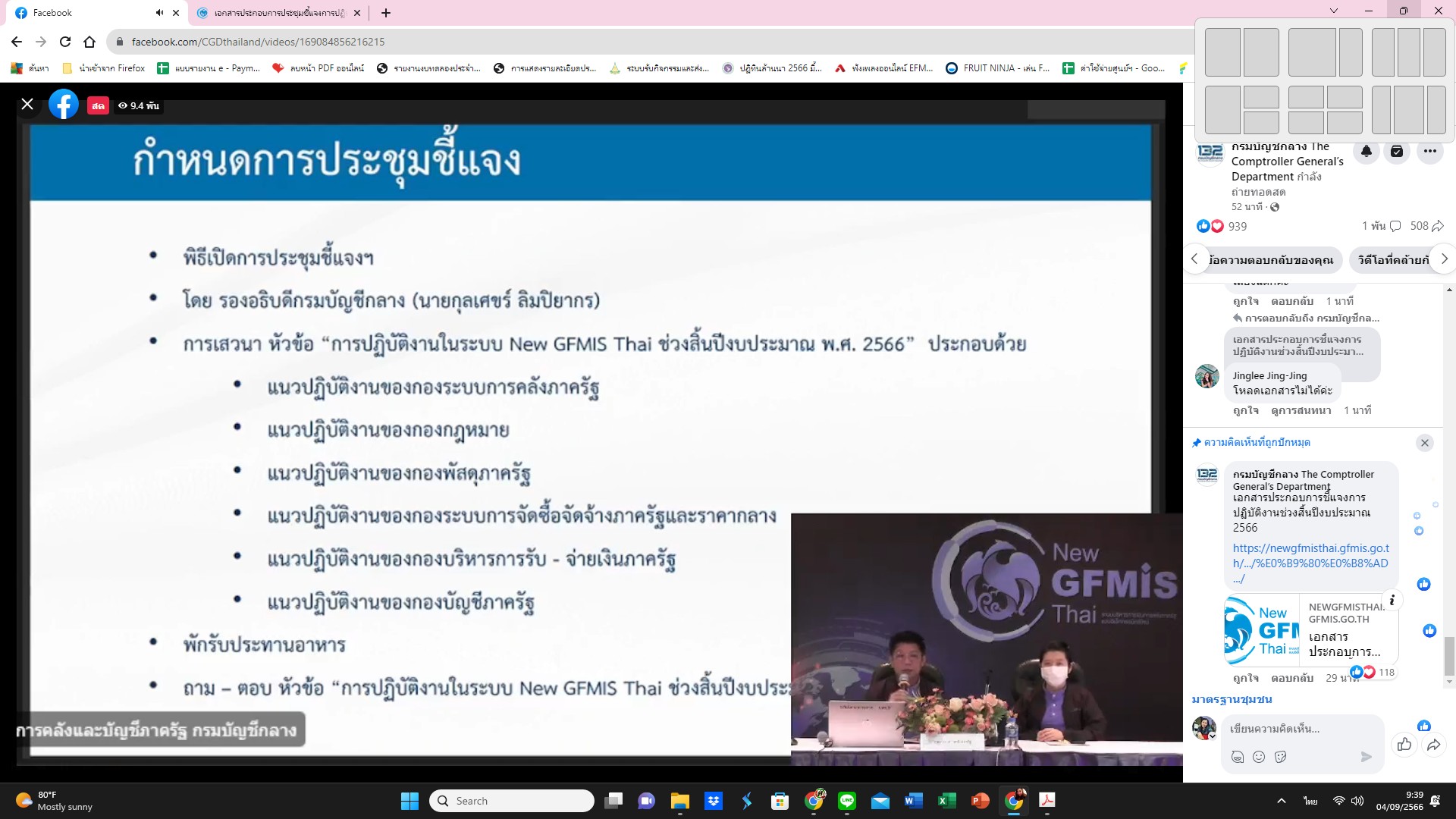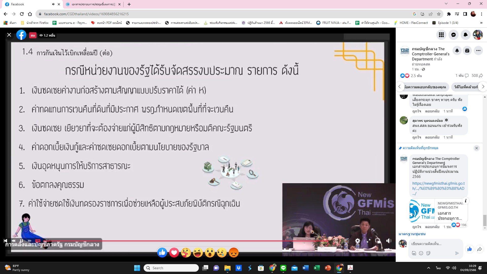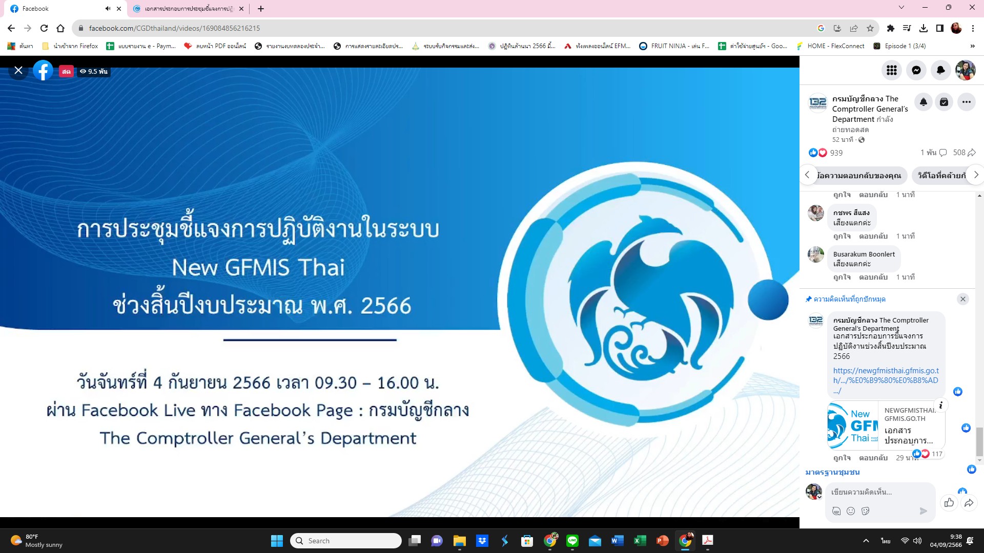 วันที่ 4 กันยายน 2566 นางพรรณี สุขใส ผู้อำนวยการศูนย์ส่งเสริมและพัฒนาอาชีพการเกษตรจังหวัดเชียงราย มอบหมายให้นางสาวภีรณัฐ นักหล่อ เจ้าพนักงานการเงินและบัญชี เข้าร่วมประชุมชี้แจงการปฏิบัติงานในระบบ New GFMIS Thai ช่วงสิ้นปีงบประมาณ พ.ศ.2566 เพื่อให้มีความรู้ ความเข้าใจ และสามารถปฏิบัติงานเกี่ยวกับระบบ New GFMIS Thai ในการเตรียมความพร้อมการปฏิบัติงานก่อนสิ้นปีงบประมาณได้อย่างครบถ้วนถูกต้องและเพื่อให้มีความรู้ความเข้าใจเกี่ยวกับหลักเกณฑ์/แนวทางการกันเงินไว้เบิกเหลื่อมปีและขยายเวลาการเบิกจ่ายเงิน โดยมีนายกุลเศขร์ ลิมปิยากร รองอธิบดีกรมบัญชีกลางเป็นประธานเปิดการประชุมฯ ผ่านระบบประชุมออนไลน์ Facebook Live เพจของกรมบัญชีกลาง ณ ศูนย์ส่งเสริมและพัฒนาอาชีพการเกษตรจังหวัดเชียงราย