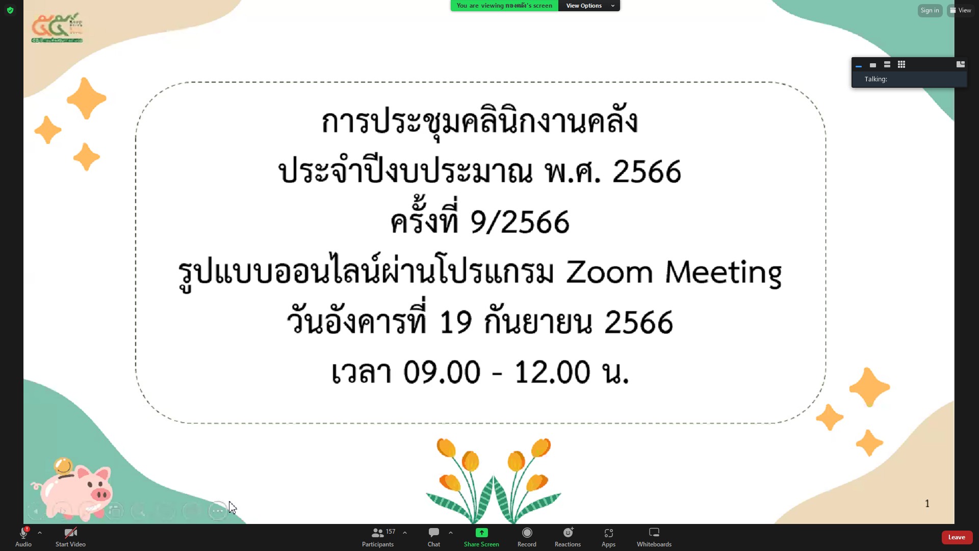 ศสพ.ชร. ร่วมประชุมคลินิกงานคลัง ประจำปีงบประมาณ พ.ศ.2566 ครั้งที่ 9/2566 ผ่านระบบ Zoom Meeting.