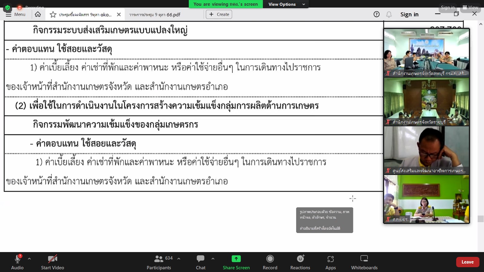 วันที่ 9 ตุลาคม 2566 นางพรรณี สุขใส ผู้อำนวยการศูนย์ส่งเสริมและพัฒนาอาชีพการเกษตรจังหวัดเชียงราย พร้อมด้วยนางวราพร มีสุภา นักวิชาการส่งเสริมการเกษตรชำนาญการ และนายปรัชญา อยู่อินทร์ เจ้าพนักงานธุรการชำนาญงาน เข้าร่วมประชุมชี้แจงการจัดสรรงบประมาณรายจ่ายประจำปี พ.ศ.2567 โดยใช้งบประมาณรายจ่ายประจำปีงบประมาณ พ.ศ.2566 ไปพลางก่อน ผ่านระบบออนไลน์ Zoom Meeting. เพื่อรับทราบหลักเกณฑ์และเงื่อนไขการใช้งบประมาณปีงบ พ.ศ.2566 การจัดสรรงบประมาณรายจ่ายประจำปี พ.ศ.2567 โดยใช้งบประมาณปี พ.ศ.2566 ไปพลางก่อน การจัดทำแผนปฏิบัติงานและแผนการใช้จ่ายงบประมาณ พ.ศ.2566 ไปพลางก่อน และโครงการภายใต้แผนงานบูรณาการเศรษกิจฐานราก(เดิม) โดยมีนางอัญชลี สุวจิตตานนท์ รองอธิบดีกรมส่งเสริมการเกษตร ด้านการบริหาร เป็นประธานในการประชุมฯ ณ ศูนย์ส่งเสริมและพัฒนาอาชีพการเกษตรจังหวัดเชียงราย