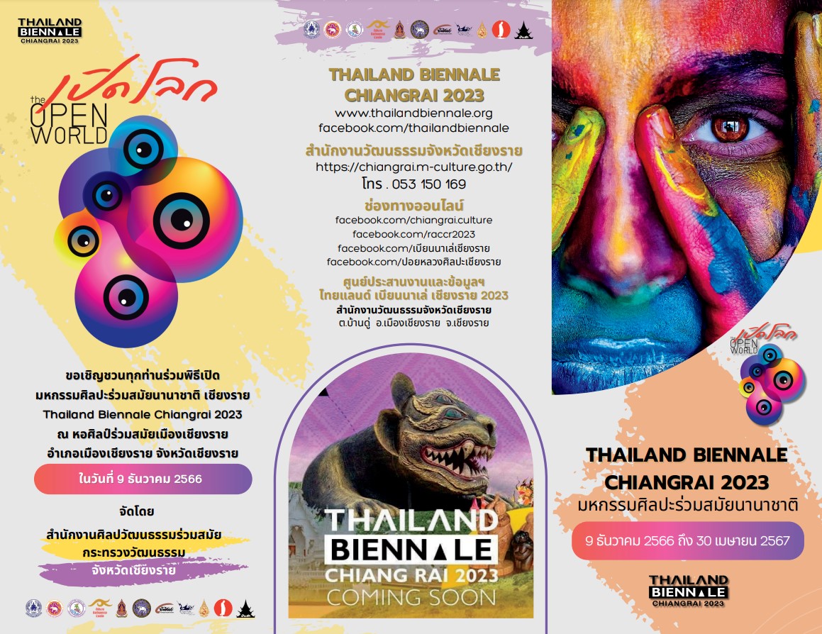 พบกับงานมหกรรมศิลปะร่วมสมัยนานาชาติ ไทยแลนด์ เบียนนาเล่ เชียงราย 2566 ระหว่างวันที่ 9 ธันวาคม 2566 ไปจนถึง 30 เมษายน 2567 09/10/202328/05/2024aopdh11