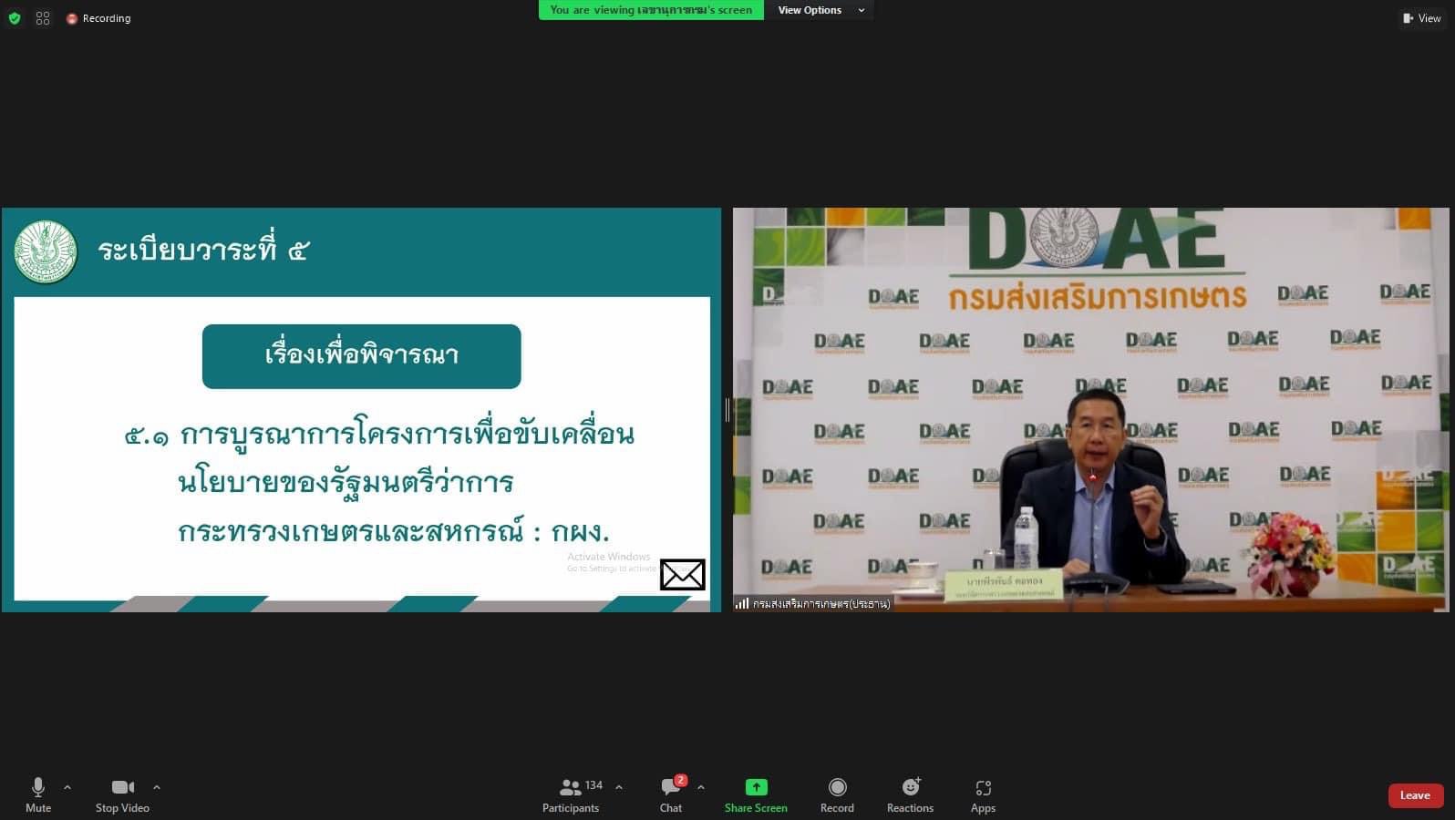 ศสพ.ชร. ร่วมประชุมผู้บริหารกรมส่งเสริมการเกษตร ครั้งที่ 6/2566 ผ่านระบบ Zoom Meeting.