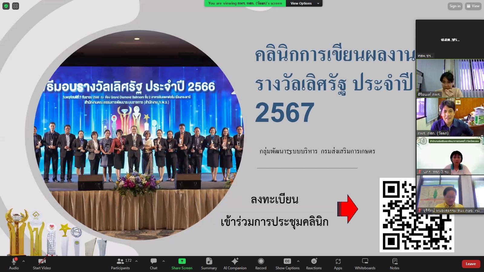 ศสพ.ชร. เข้าร่วมประชุมคลินิกให้ความรู้แนวทางการเขียนผลงานเลิศรัฐ กรมส่งเสริมการเกษตร ประจำปี 2567