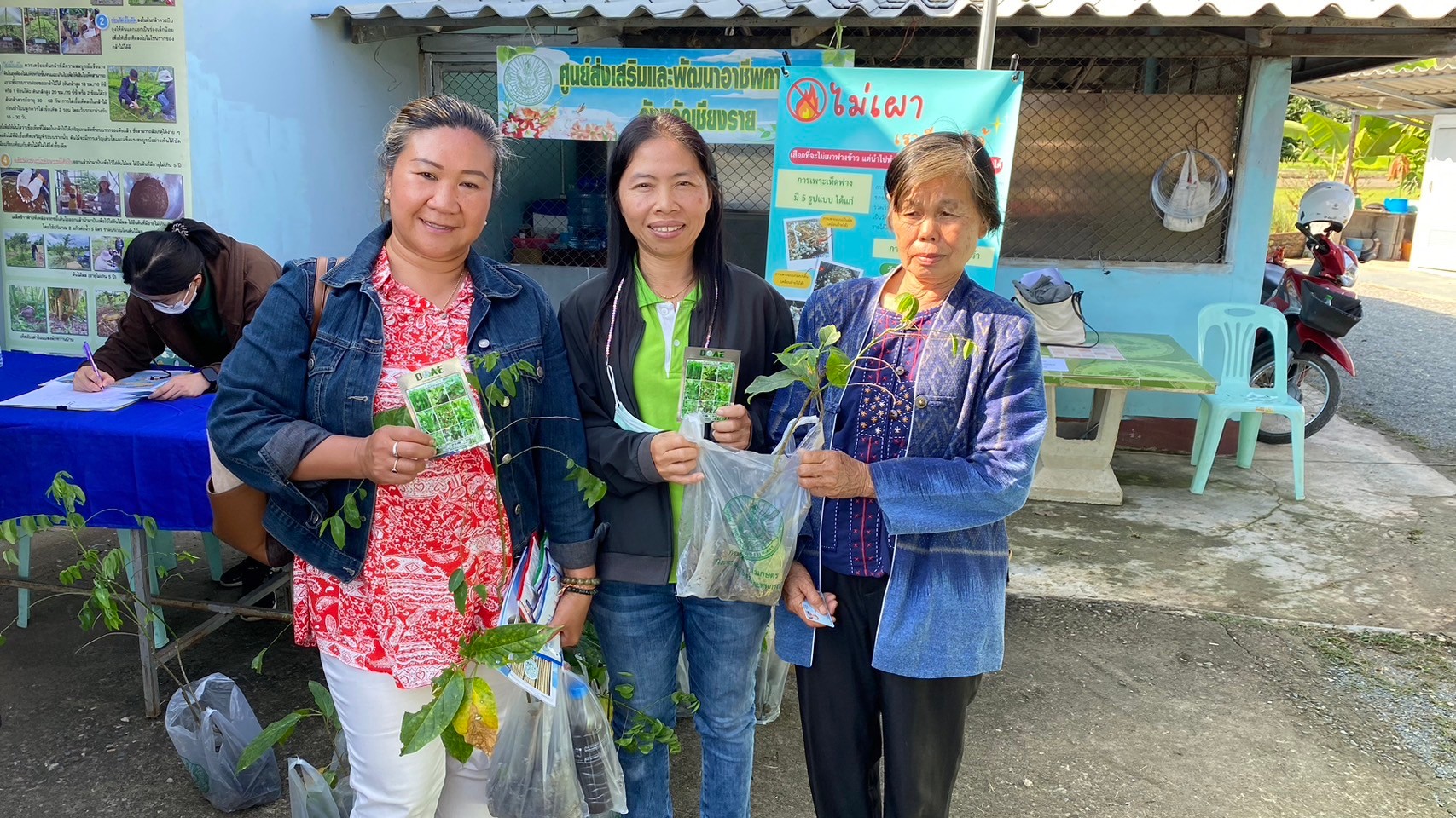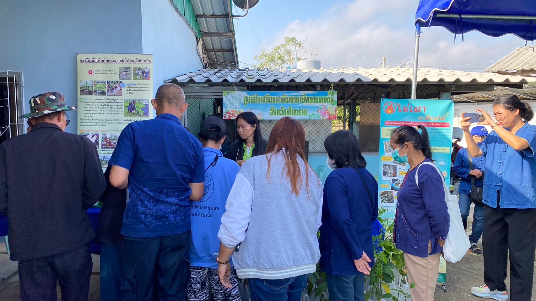 วันที่ 17 มกราคม 2567 เวลา 08.30 น. นางพรรณี สุขใส ผู้อำนวยการศูนย์ส่งเสริมและพัฒนาอาชีพการเกษตรจังหวัดเชียงราย มอบหมายให้นางสาวอ้อ แปงสมุทร นักวิชาการส่งเสริมการเกษตรชำนาญการ พร้อมด้วยเจ้าหน้าที่ศูนย์ฯ ร่วมจัดนิทรรศการวันถ่ายทอดเทคโนโลยีเพื่อเริ่มต้นฤดูกาลผลิตใหม่ (Field Day) ปี 2567 เพื่อเป็นการผสมผสานระหว่างเทคโนโลยีที่หน่วยงานราชการส่งเสริมกับภูมิปัญญาของเกษตรกร และได้มีการประยุกต์ใช้ให้มีความเหมาะสมอย่างเฉพาะเจาะจงกับสภาพแวดล้อมของพื้นที่นั้นๆ โดยผ่านกลไกของศูนย์เรียนรู้การเพิ่มประสิทธิภาพการผลิตสินค้าเกษตร (ศพก.) และหน่วยงานต่างๆ มีการให้บริการด้านการเกษตร เพื่อสนับสนุนเกษตรกรเริ่มต้นการผลิตในปีการเพาะปลูกใหม่ ทั้งนี้ศูนย์ฯ ได้จัดนิทรรศการ และสนับสนุนต้นพันธุ์ผักหวานบ้าน ผักเชียงดา และเมล็ดพันธุ์ผักกวางตุ้ง พร้อมทั้งประชาสัมพันธ์การนำวัสดุเหลือใช้ทางการเกษตรมาสร้างรายได้เสริม โดยการเพาะเห็ดฟาง และการรับสมัครเกษตรกรที่สนใจอบรมระบบน้ำอัจฉริยะ HandySense รุ่นที่ 1 ประจำปี 2567 โดยมีนายสุทธิรัตน์ แสงเพ็ญจันทร์ ปลัดอำเภออาวุโส อำเภอแม่จัน เป็นประธานฯกล่าวเปิดกิจกรรมฯ ณ ศูนย์เรียนรู้การเพิ่มประสิทธิภาพการผลิตสินค้าเกษตรกรเครือข่าย (นายสมศักดิ์ จักรแก้ว เกษตรกรต้นแบบ) หมู่ที่ 11 บ้านผาเรือ ตำบลท่าข้าวเปลือก อำเภอแม่จัน จังหวัดเชียงราย