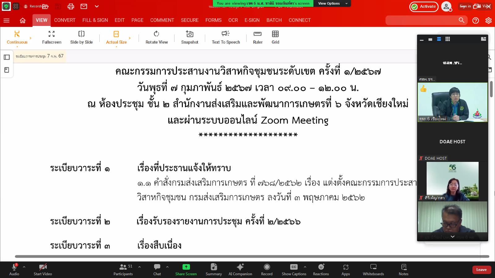 ศสพ.ชร. ร่วมประชุมคณะกรรมการประสานงานวิสาหกิจชุมชนระดับเขต ครั้งที่ 1/2567 ผ่านระบบออนไลน์ Zoom Meeting