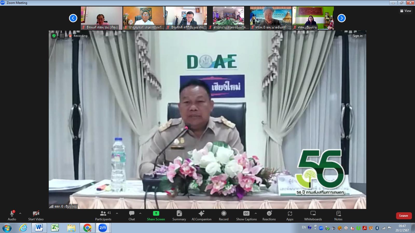 วันที่ 20 กุมภาพันธ์ 2567 เวลา 09.30 น. นางพรรณี สุขใส ผู้อำนวยการศูนย์ส่งเสริมและพัฒนาอาชีพการเกษตรจังหวัดเชียงราย พร้อมด้วยนางวราพร มีสุภา นักวิชาการส่งเสริมการเกษตรชำนาญการ เข้าร่วมประชุมเกษตรจังหวัดและหัวหน้าส่วนระดับเขต ครั้งที่ 4 ปีงบประมาณ 2567 ผ่านระบบประชุมทางไกล (Application Zoom) จากห้องประชุมสำนักงานส่งเสริมและพัฒนาการเกษตรจังหวัดเชียงใหม่ ณ ศูนย์ส่งเสริมและพัฒนาการเกษตรจังหวัดเชียงราย มีวัตถุประสงค์เพื่อติดตามการดำเนินงานตามนโยบายของรัฐบาลและกรมส่งเสริมการเกษตร ตลอดจนการประสานงานราชการ และรับทราบปัญหาอุปสรรคในการดำเนินงาน พร้อมแลกเปลี่ยนเรียนรู้กระบวนการทำงานร่วมกัน ซึ่งมีบุคคลเป้าหมายในการประชุมประกอบด้วย เกษตรจังหวัด ผู้อำนวยการศูนย์ปฏิบัติการในสังกัด และผู้ที่เกี่ยวข้อง โดยมีนายเรืองพจน์ ธารานาถ ผู้อำนวยการสำนักงานส่งเสริมและพัฒนาการเกษตรจังหวัดเชียงใหม่ เป็นประธานกล่าวเปิดการประชุมฯ