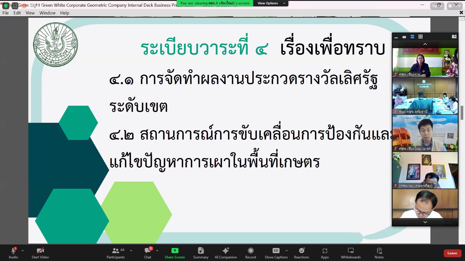 ศสพ.ชร. ร่วมประชุมเกษตรจังหวัดและหัวหน้าส่วนระดับเขต ครั้งที่ 4 ปีงบประมาณ 2567 ผ่านระบบประชุมทางไกล (Application Zoom)