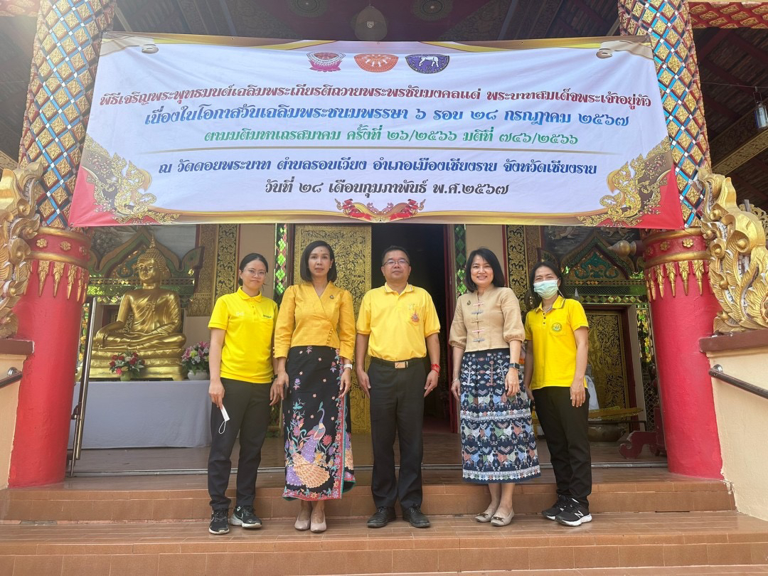 วันที่ 28 กุมภาพันธ์ 2567 เวลา 14.30 น. นางพรรณี สุขใส ผู้อำนวยการศูนย์ส่งเสริมและพัฒนาอาชีพการเกษตรจังหวัดเชียงราย มอบหมายให้เจ้าหน้าที่ของศูนย์ฯ เข้าร่วมพิธีเจริญพระพุทธมนต์เฉลิมพระเกียรติ ถวายพระพรชัยมงคลแด่ พระบาทสมเด็จพระเจ้าอยู่หัว เนื่องในโอกาสเฉลิมพระชนมพรรษา 6 รอบ 28 กรกฎาคม 2567 ณ วัดดอยพระบาท ตำบลรอบเวียง อำเภอเมืองเชียงราย จังหวัดเชียงราย