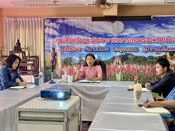 วันที่ 6 มีนาคม 2567 เวลา 09.00 นางพรรณี สุขใส ผู้อำนวยการศูนย์ส่งเสริมและพัฒนาอาชีพการเกษตรจังหวัดเชียงรายพร้อมด้วยข้าราชการ ลูกจ้างประจำ และพนักงานราชการของศูนย์ฯ ร่วมประชุมประจำเดือน มีนาคม 2567 โดยสาระสำคัญมุ่งเน้นการดำเนินงานของศูนย์ฯ ในบทบาทการเผยแพร่ข้อมูลข่าวสาร ความรู้ แก่เกษตรกรในพื้นที่จังหวัดเชียงราย และจังหวัดพะเยา ตลอดเดือน มีนาคม 2567 และแจ้งผลการเบิกจ่ายงบประมาณของศูนย์ฯ ณ ห้องประชุมศูนย์ส่งเสริมและพัฒนาอาชีพการเกษตรจังหวัดเชียงราย ตำบลป่าอ้อดอนชัย อำเภอเมืองเชียงราย จังหวัดเชียงราย