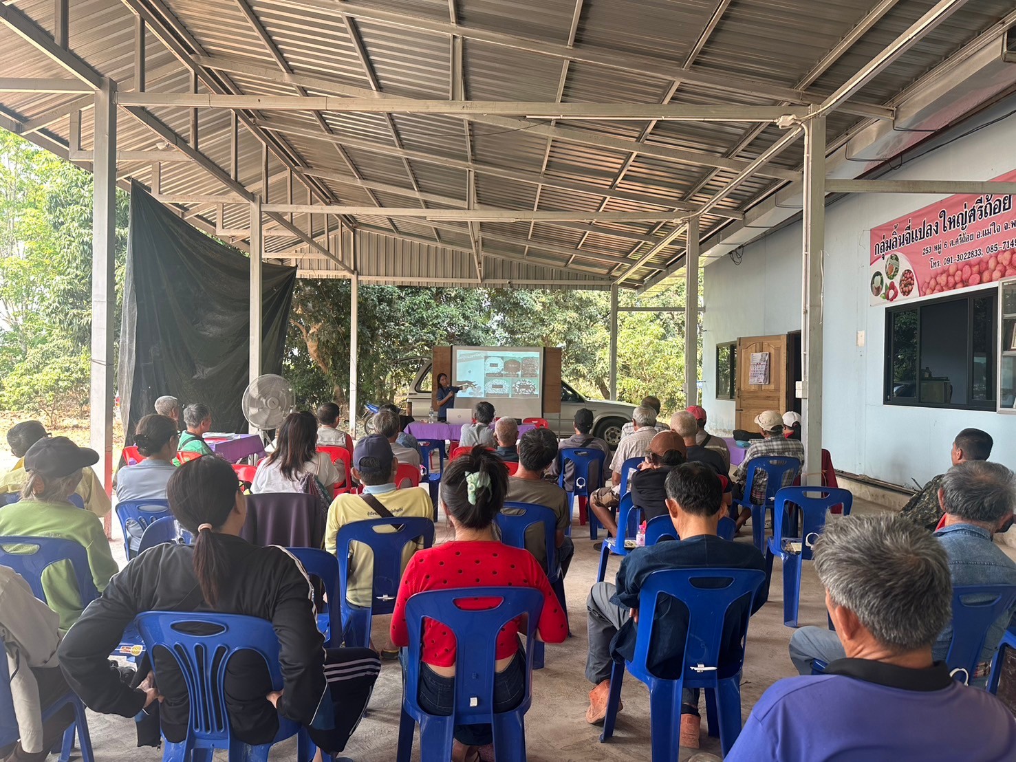 วันที่ 28 มีนาคม 2567 เวลา 08.30 น. นางพรรณี สุขใส ผู้อำนวยการศูนย์ส่งเสริมและพัฒนาอาชีพการเกษตรจังหวัดเชียงราย มอบหมายให้เจ้าหน้าที่ศูนย์ฯ ร่วมเป็นวิทยากรถ่ายทอดความรู้ในหัวข้อ “การป้องกันและกำจัดแมลงศัตรูลิ้นจี่ และการผลิตปัจจัยการผลิตเพื่อลดต้นทุนการผลิตลิ้นจี่” ณ กลุ่มแปลงใหญ่ลิ้นจี่ หมู่ที่ 7-8 ตำบลศรีถ้อย อำเภอแม่ใจ จังหวัดพะเยา ภายใต้โครงการยกระดับคุณภาพสินค้าเกษตรจากฟาร์มสู่ผู้บริโภค โดยสำนักงานเกษตรจังหวัดพะเยา มีวัตถุประสงค์เพื่อพัฒนาเกษตรกรให้มีศักยภาพในการผลิตลิ้นจี่คุณภาพตามมาตรฐานสิ่งบ่งชี้ทางภูมิศาสตร์ (GI) ลิ้นจี่แม่ใจพะเยา ให้มีความปลอดภัย และการใช้เทคโนโลยีการผลิตที่เหมาะสม สามารถยกระดับคุณภาพลิ้นจี่ด้วยนวัตกรรมเพื่อเพิ่มมูลค่าผลผลิตต่อไป